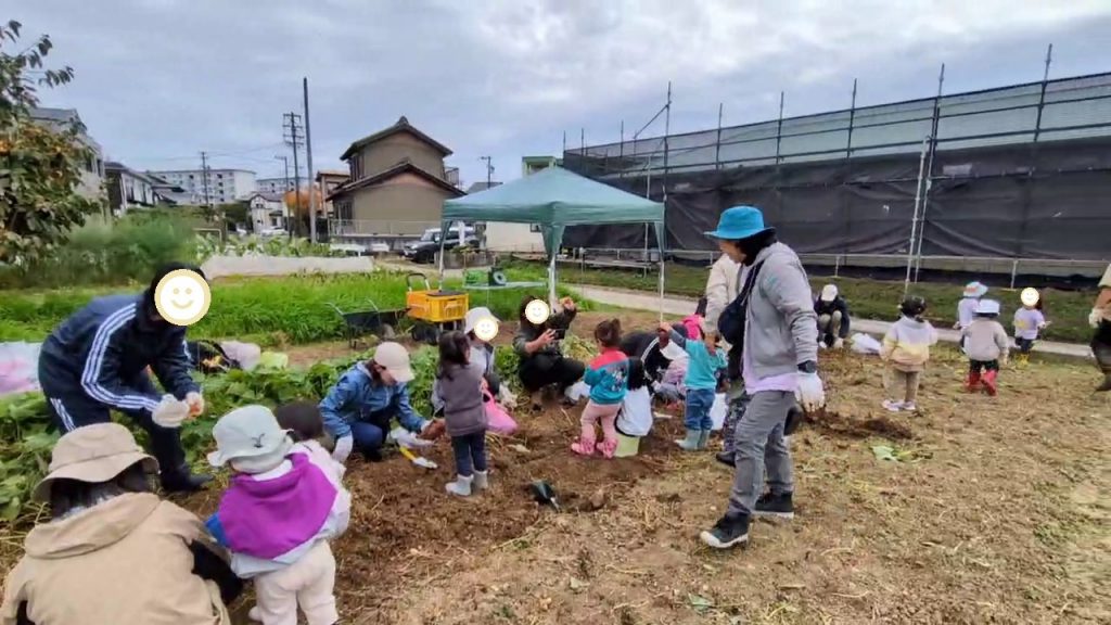 可愛いお子さんたちが土を掘って、大きいお芋が取れると歓声があがっていました。