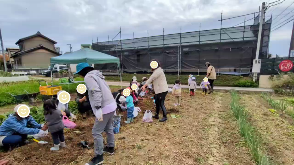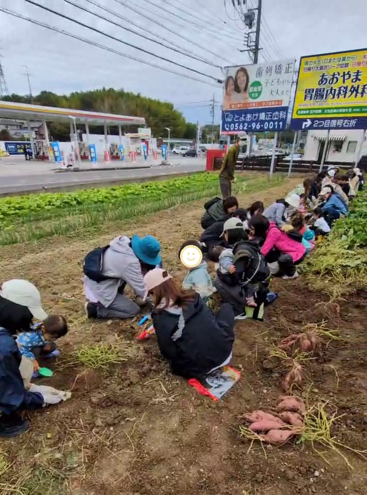 当日は曇りから雨予報でしたが、何とか天気はもってくれて、楽しく芋掘りをすることができました。